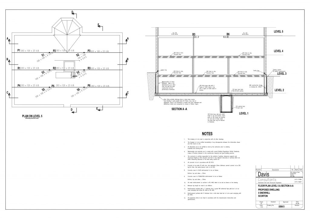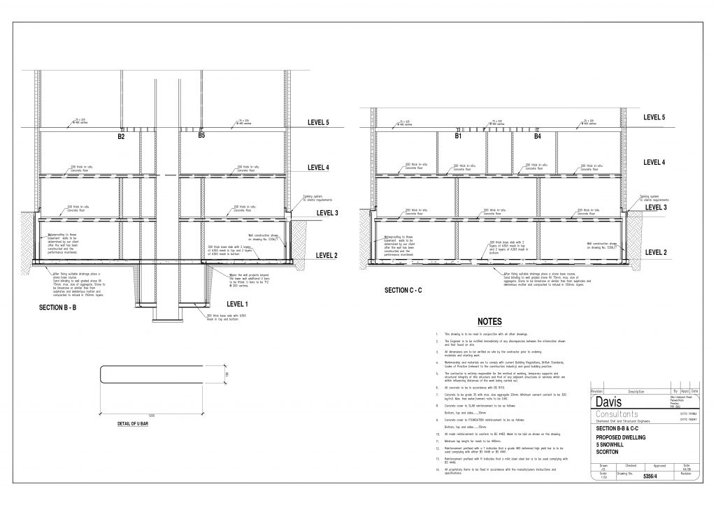 This project involves the construction of a new house; there is a considerable slope to the ground level around the house. The house is built on five levels, with three levels being a basement and requiring a retaining wall. For this project, we produced the retaining wall designs, superstructure and foundation design.