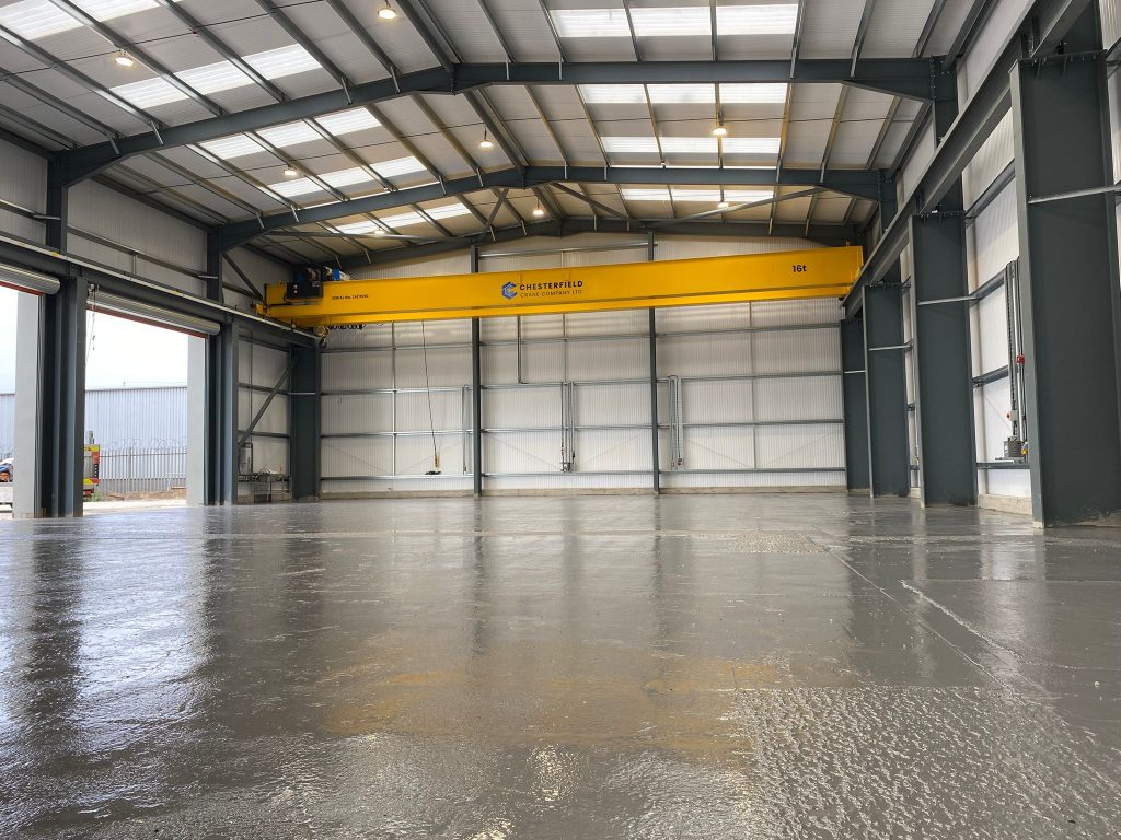 A key element of the client’s brief was the installation of an overhead gantry crane, essential for handling heavy components and equipment within the warehouse. To achieve this, we partnered with the engineering team at Chesterfield Crane Company Ltd, working collaboratively to design a structural frame capable of safely supporting the crane’s operational loads.